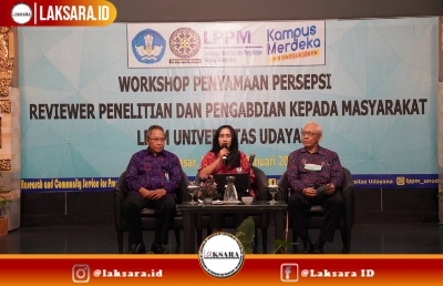 Denpasar, LAKSARA.ID – Dalam rangka peningkatan kapasitas dan kompetensi reviewer program penelitian dan pengabdian kepada masyarakat, Lembaga Penelitian dan Pengabadian kepada Masyarakat (LPPM) Universitas Udayana (Unud) menyelenggarakan Workshop Penyamaan Persepsi Reviewer internal Unud bertempat di Prime Plaza Hotel Sanur Bali. Workshop ini dibuka oleh Rektor Unud yang dalam kesempatan ini diwakili oleh Wakil Rektor Bidang Perencanaan, Kerjasama dan Informasi Prof. Dr. dr. I Putu Gede Adiatmika, M.Kes. Selasa, (24/1/23).