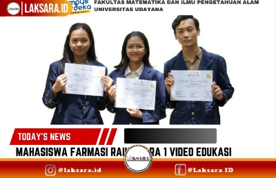 Denpasar, LAKSARA.ID – Selasa 3 Mei 2023. Program Studi Farmasi, Fakultas Matematika dan Ilmu Pengetahuan Alam, Universitas Udayana kembali menorehkan prestasi di tingkat Nasional. Adalah Allysia Maria Vianney Putri, Mulan Gevika Amara Putri, dan Putu Dani Paramartha Wijaya bertiga mereka berhasil menyingkirkan peserta dari berbagai Universitas, sampai akhirnya keluar sebagai Juara I dalam kategori Video Edukasi PHARMAPLAST 2023 yang diselenggarakan oleh Himpunan Mahasiswa Farmasi Universitas PGRI Adi Buana Surabaya.