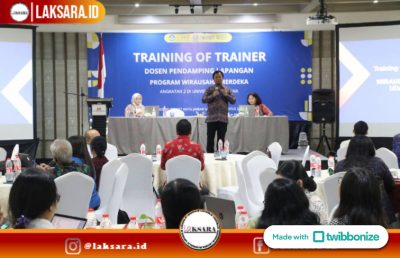 Denpasar, LAKSARA.ID – Universitas Udayana (Unud) menyelenggarakan Training of Trainer (TOT) Dosen Pendamping Lapangan (DPL) dan Pitching Mentor Program Wirausaha Merdeka (WMK) Angkatan 2 Tahun 2023 bertempat di Swiss-Belresort Watu Jimbar Sanur, Jumat (18/8/2023). Kegiatan yang dibuka langsung oleh Wakil Rektor Bidang Kemahasiswaan Unud ini diikuti oleh Para Dosen Pembimbing Lapangan dari Universitas Udayana, Institut Seni Indonesia Denpasar, Universitas Panji Sakti, Universitas Dwijendra, Para Pimpinan Perusahaan maupun Mentor Program WMK Angkatan 2 Tahun 2023.