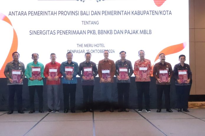 Denpasar, LAKSARA.ID – Sekretaris Daerah Provinsi Bali, Dewa Made Indra, memberikan apresiasi kepada para wajib pajak yang telah membayar pajak dan tunggakan pajak kendaraan bermotor selama program relaksasi pajak. Ia juga menyampaikan terima kasih kepada Badan Pendapatan Daerah (Bapenda), BPKAD, serta instansi terkait atas upaya pemungutan pajak yang berhasil mencapai pendapatan 188 miliar rupiah dari target 98 miliar rupiah. Hal ini disampaikan dalam acara Penandatanganan Perjanjian Kerja Sama (PKS) antara Pemerintah Provinsi Bali dan Pemerintah Kabupaten/Kota terkait Sinergitas Penerimaan PKB, BBNKB, dan Pajak MBLB di The Meru Hotel, Denpasar, Selasa (15/10).