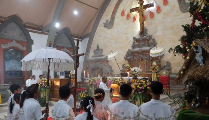 Badung, Laksara.id – Romo Rony Alfridus Bere Lelo memimpin umat Katolik dalam melaksanakan Misa Malam Natal di Gereja Katolik Paroki Roh Kudus Babakan, Desa Canggu, Badung, Bali, pada Selasa (24/12/2024) malam.