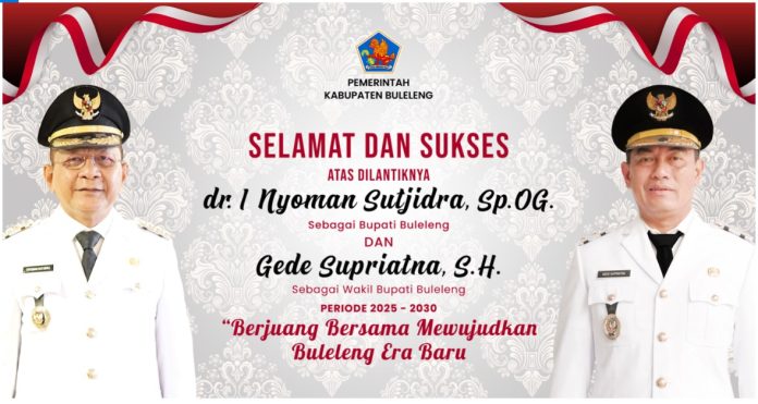 Buleleng, Laksara.id – Selamat dan Sukses Atas Dilantiknya I Nyoman Sutjidra, sebagai Bupati Buleleng dan Gede Supriatna, sebagai Wakil Bupati Buleleng, Periode Tahun 2025 – 2030