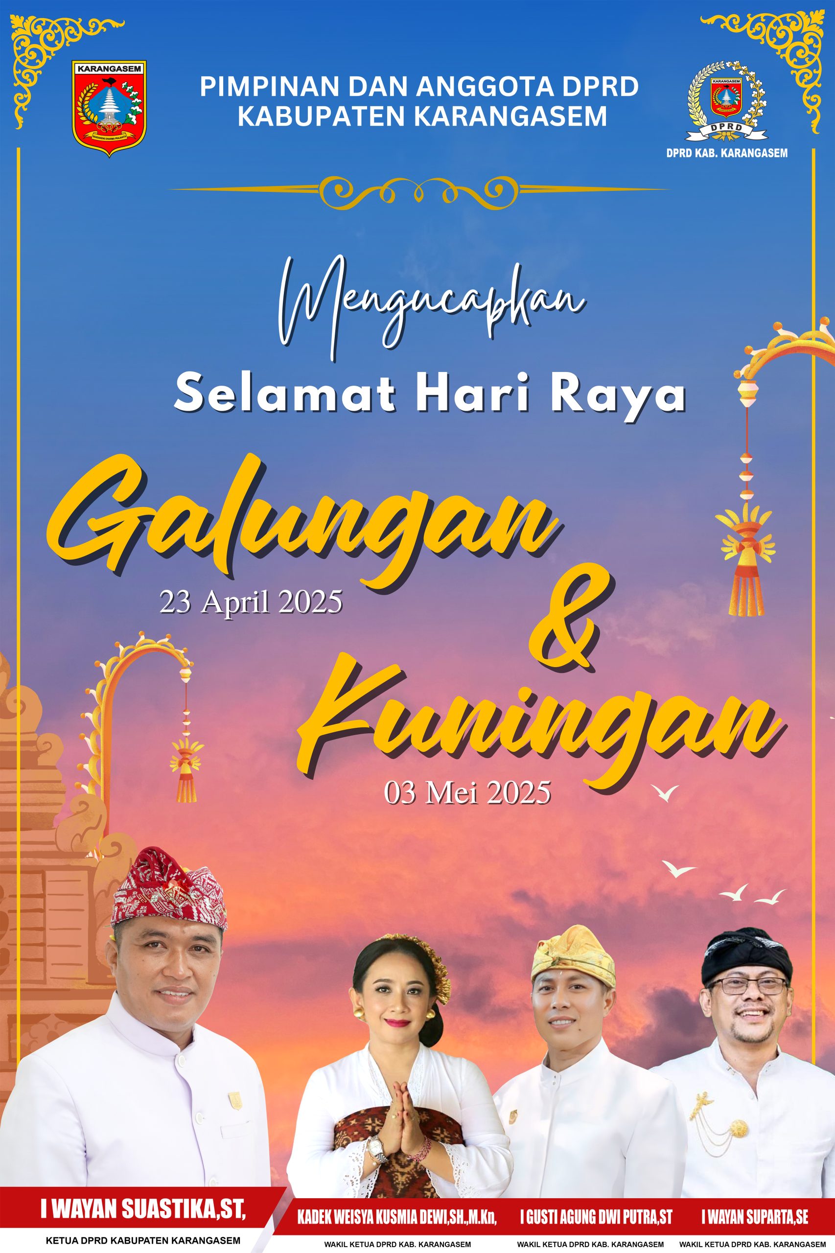 “Om Ano Bhadrah Krattawoyantu Wistawah” Rahajeng Rahina Galungan lan Kuningan dumogi sareng sami manggih kerahayuan, ucap Suastika mewakili segenap Pimpinan dan Anggota DPRD Kabupaten Karangasem.