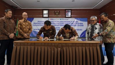 “Indonesia dinilai baik dalam kapasitas kelembagaan dan pemanfaatan data, tetapi masih lemah dalam investasi serta partisipasi sektor publik dan swasta. Penandatanganan ini menjadi momentum mengakselerasi partisipasi sektor privat dan badan usaha agar turut membangun ekosistem industri geospasial. Ini adalah katalis untuk mendorong pemanfaatan Informasi Geospasial secara luas di pemerintahan dan masyarakat,” ungkap Aris.