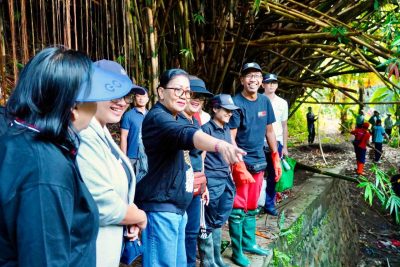 Guyuran hujan serta jalanan licin tak menyurutkan semangat Ibu Putri Koster bersama tim dari Yayasan Sungai Watch, anggota TP PKK Provinsi dan Kabupaten Tabanan, serta Tim Posyandu Provinsi untuk turun langsung ke sungai dan memungut sampah plastik maupun sampah anorganik lainnya, baik yang tersangkut di pohon bambu maupun di sepanjang aliran sungai.