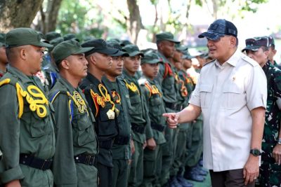 Aceh, Laksara.id – Menteri Pertahanan RI Sjafrie Sjamsoeddin mengunjungi peserta Pendidikan Dasar Militer (Diksarmil) Sarjana Penggerak Pembangunan Indonesia (SPPI) Batch-3 yang tengah menempuh pendidikan di Rindam Iskandar Muda, Mata le, Aceh Besar, Selasa (24/6/2025).