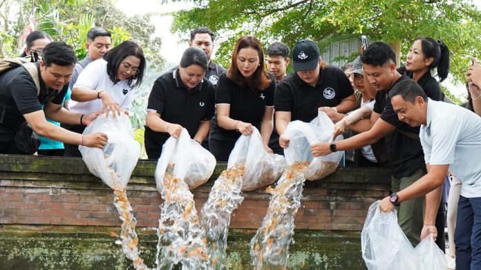 Badung, Laksara.id – Ketua Badan Kerja Sama Organisasi Wanita (BKOW) Provinsi Bali, Ny. Seniasih Giri Prasta, mengajak teruna-teruni Banjar Babakan, Desa Gulingan, Mengwi, untuk melanjutkan program Tanam Tuwuh Provinsi Bali. Hal ini disampaikannya sesaat setelah menabur 30 ribu benih ikan mujair dan ikan nila di sepanjang Sungai Banjar Babakan Kangin, Desa Gulingan, Mengwi, Badung, Minggu (10/8).