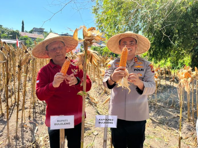 Buleleng, Laksara.id – Polres Buleleng bersama dengan Pemerintah Kabupaten (Pemkab) Buleleng meluncurkan bibit jagung hibrida unggulan “Goak Poleng” bersamaan dengan kegiatan panen perdana di Kebun Terintegrasi Pemkab Buleleng, Kelurahan Banyuasri, Kecamatan Buleleng, Rabu (13/8/2025). Peluncuran ini disebut Bupati I Nyoman Sutjidra sebagai kado istimewa menyambut HUT ke-80 Kemerdekaan Republik Indonesia, sekaligus menegaskan optimisme menuju swasembada pangan di Buleleng.