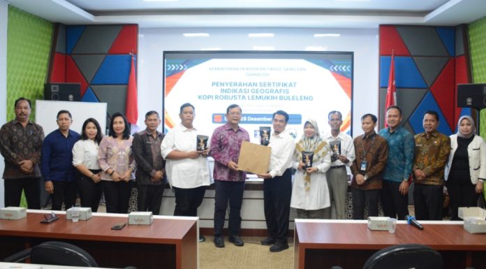 Buleleng, Laksara.id – Fakultas Hukum Universitas Sebelas Maret (FH UNS) Surakarta menyelenggarakan kegiatan penyerahan sertifikat Indikasi Geografis (IG) Kopi Robusta Lemukih Buleleng kepada Pemerintah Kabupaten Buleleng, Senin, (29/12), bertempat di Ruang Pertamina Gedung Pascasarjana Fakultas Hukum UNS sebagai wujud nyata komitmen perguruan tinggi tersebut dalam mendukung perlindungan hukum produk unggulan daerah serta peningkatan kesejahteraan masyarakat. Sertifikat IG yang diterbitkan oleh Kementerian Hukum Republik Indonesia ini diberikan kepada Masyarakat Perlindungan Indikasi Geografis (MPIG) Kopi Robusta Lemukih Buleleng dengan nama IG “Kopi Robusta Lemukih Buleleng” dan Nomor Pendaftaran ID G 000000257.
