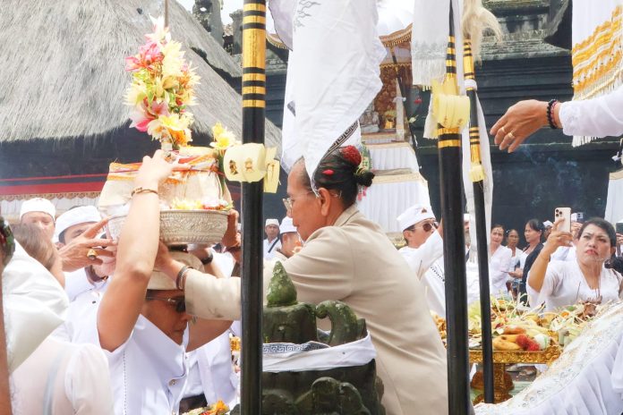 Ia menegaskan, bhakti kepada leluhur harus tercermin dalam sikap hidup sehari-hari, termasuk menjaga persatuan, keteduhan sosial, serta kontribusi nyata bagi masyarakat Bali.