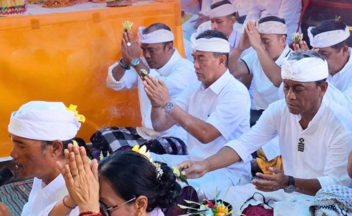 Dalam kesempatan tersebut, Wabup Supriatna turut melaksanakan persembahyangan bersama krama Dadia Pasek Wong Aya Gede serta menghaturkan punia yang diterima langsung oleh ketua panitia upacara.
